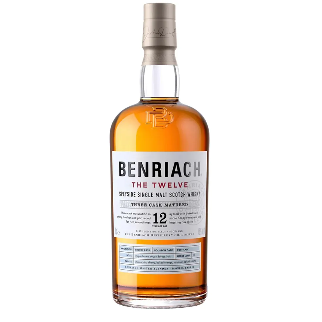 Benriach The Twelve Speyside Single Malt Whisky is three cask matured for at least twelve years in sherry casks, bourbon barrels and port casks. The whisky from each cask is then expertly married together, resulting in a smooth, sherry-rich Single Malt.