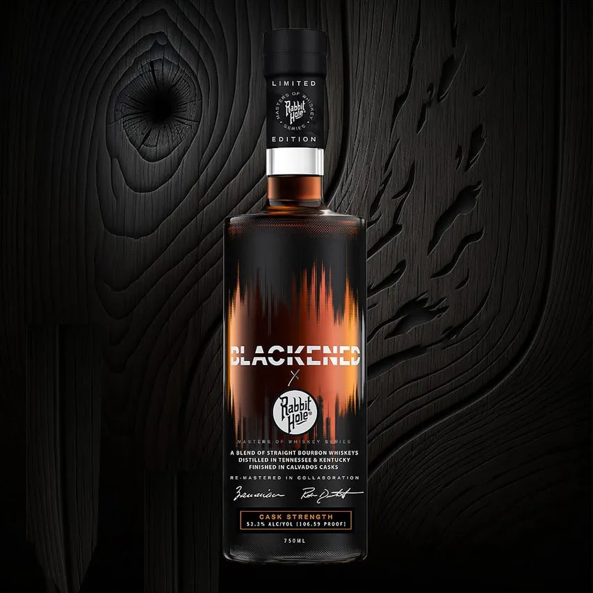 Blackened x Rabbit Hole is the 2023 release in Blackened Whiskey’s Masters of Whiskey Series, which was created in partnership with Rabbit Hole Distillery’s Founder & Hall of Fame whiskey maker, Kaveh Zamanian. This Limited Edition expression is crafted from a 13 Year Old straight Tennessee bourbon whiskey, which is 64% corn/36% rye, and Rabbit Hole Heigold High Rye Double Malt Kentucky Straight bourbon, 70% corn/25% malted rye/5% malted barley. The bourbon whiskey blend is then finished in Calvados apple brandy casks, bottled at cask strength.