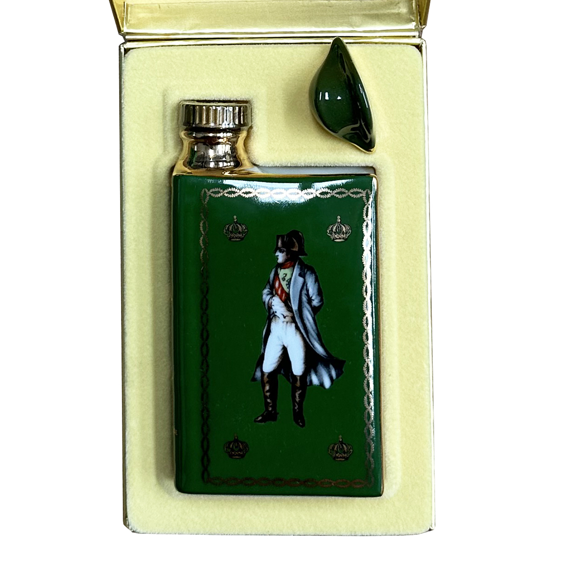 Camus Limited Edition miniatures cognac presented in Limoges Castel ceramic book-shaped decanter with 22K gold decoration. Produced to celebrate what would have been the 200th birthday of Emperor Napoléon (1769-1969), released in 1969.