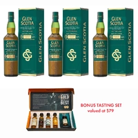 The bundle includes 3 bottles of Glen Scotia Victoriana 700ml each and FREE Glen Scotia Tasting Gift Set including Victoriana, Double Cask, 15YO, 18YO and 25YO Single Malts.
