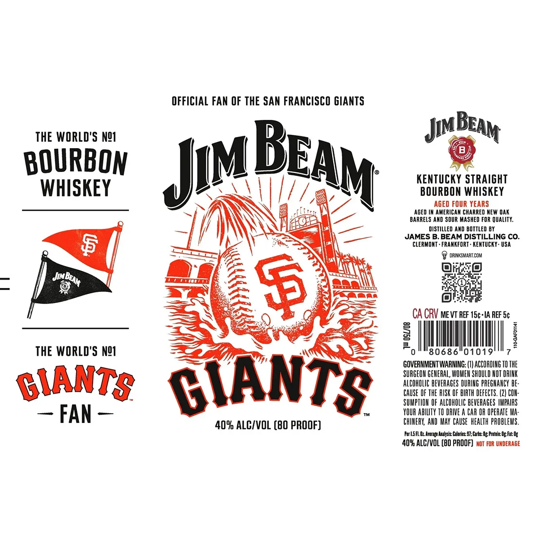 A Limited Edition San Francisco Giants of the Jim Beam classic Kentucky Straight Bourbon. Aged for 4 years in American charred new oak barrels and sour mashed.