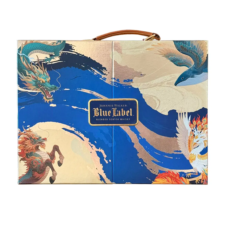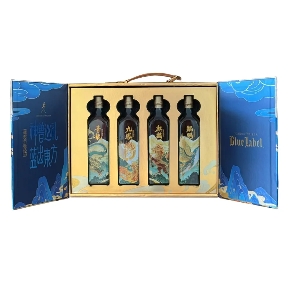 Johnnie Walker Divine Beasts Limited Edition Set draws inspiration from the Chinese classic text Shanhai Jing (Classic of Mountains and Seas), featuring exquisite artwork of legendary creatures. It was released as an exclusive collector's item and a prestigious gift option, each bottle beautifully designed with iconic mythical creatures and encased in a luxurious gift box with handle.