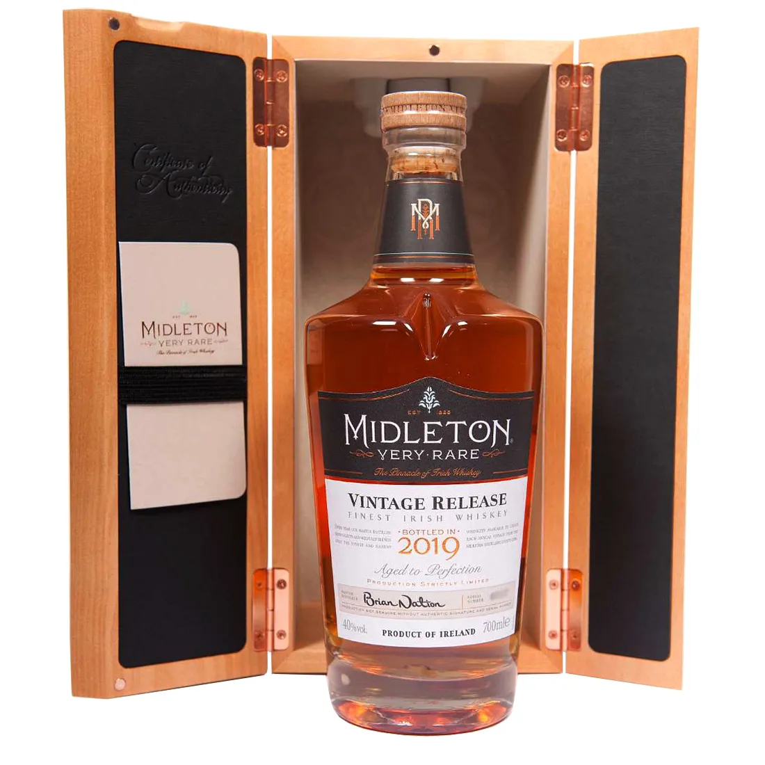 Midleton Very Rare 2019, released under the expert care of Master Distiller, Brian Nation, is a blend of whiskeys matured exclusively in lightly-charred ex-bourbon American oak barrels for between 13 and 34 years.