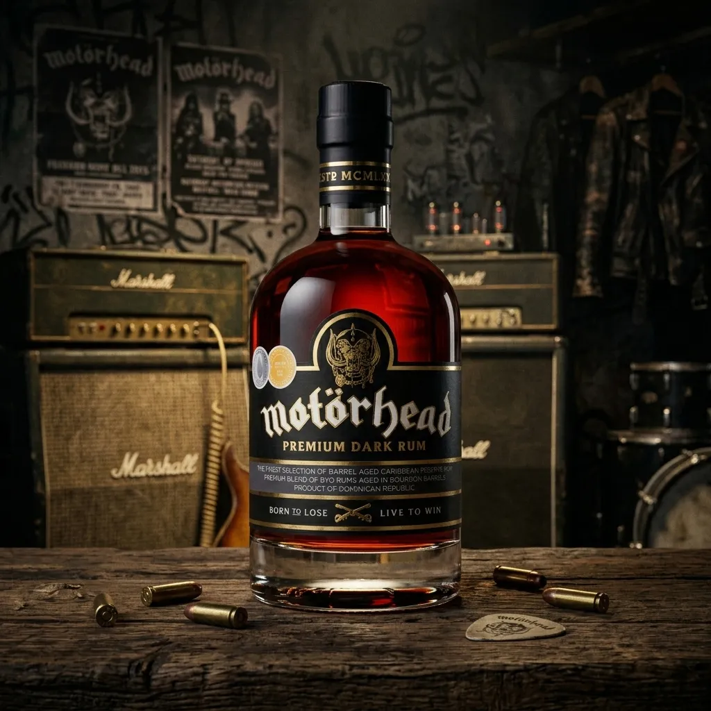The Motörhead Premium Dark Rum, launched by English rock band Motörhead, is a product of the finest selection of Caribbean Reserve Rums and has been aged for eight years in ex-bourbon barrels. The result is a smooth, dark brown rum which holds Motörhead’s boldness in every sip. The release is inspired by Motörhead’s box set ‘Born To Lose, Live To Win’.
